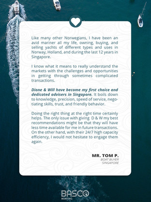 With our directories, listings and platform, and our three divisions of Connect, Advise & Trade, BASCO Boating is the most reliable and effective boating platform in Asia-Pacific in helping our clients achieve their inner most dreams about life at sea!